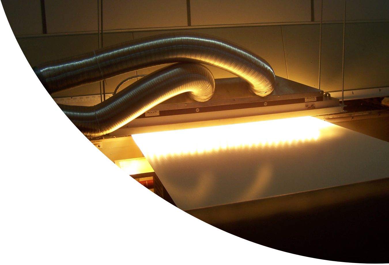 Nos systèmes infrarouges MICOR *NIR peuvent également être utilisés dans des zones EX. Ils conviennent donc parfaitement au séchage et au chauffage efficaces et sûrs d'encres d'impression, de primaires d'adhérence, de vernis et de colles à base de solvants.